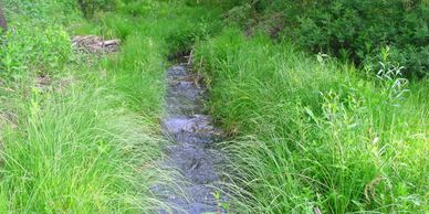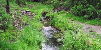 Just upstream of the water intake pipeline, the creek was dammed so silt moved in, and so did the Narrow-Leaf Water-Plantain grass (Alisma framineum Gmel.)